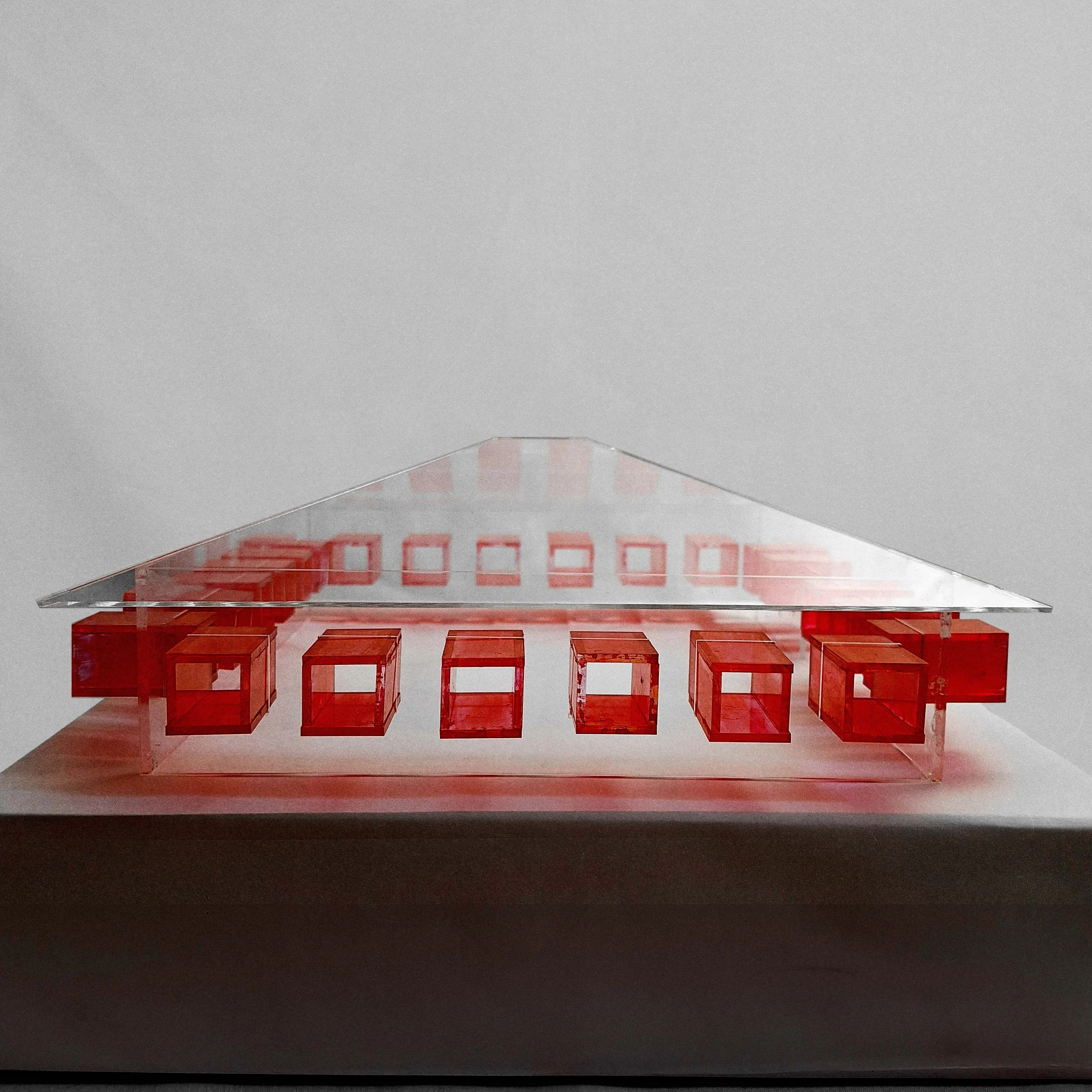 The idea of a performative space has been the subject of years of our research and experimentation, and this project serves as an experiential exploration of that concept. Can we envision a different behavior for a gallery? Can we stimulate interaction with this space by altering its structure? Can this space be used as an effective element in narrative storytelling?