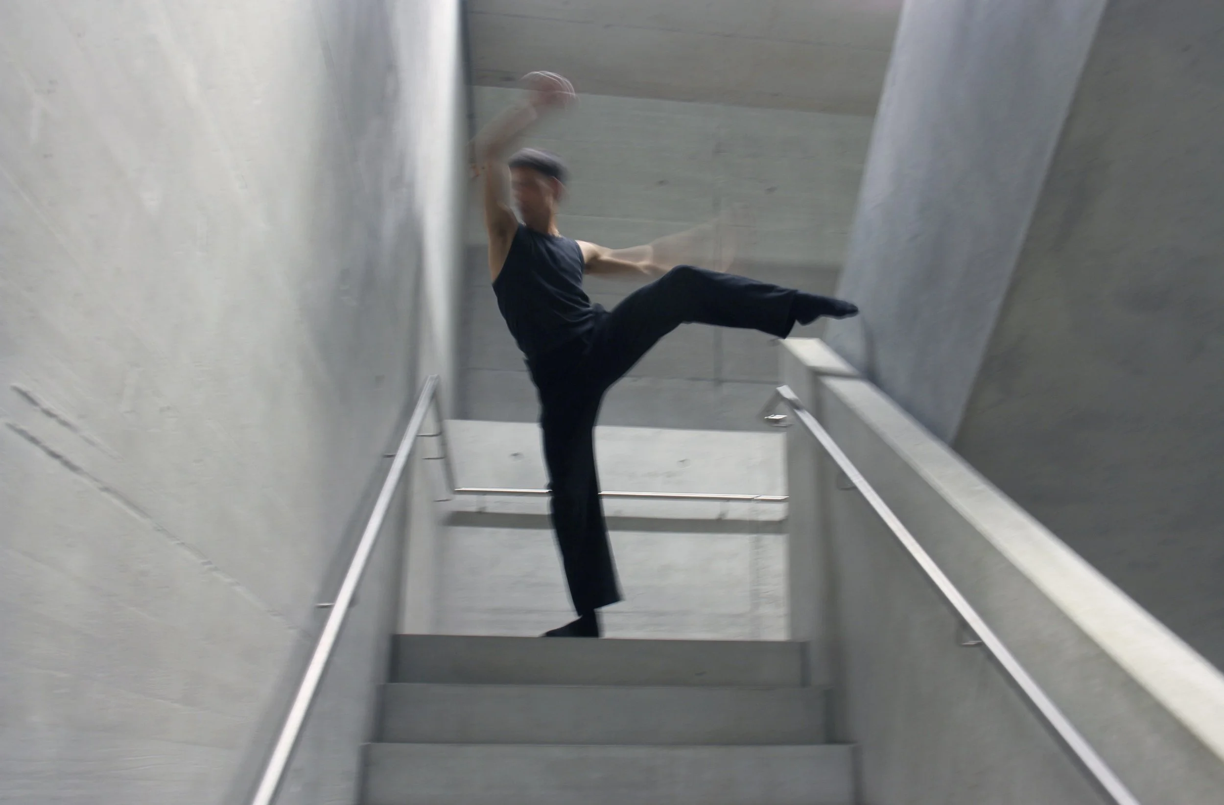This is a unique role, Mi bemol, each of its steps has its own sound. You fall in love with the staircase. When faced with each of these stairs, the body is transformed into a new form, a symphony of body and stairs. The wind blows and tries to carry you away. Your body is lighter than the one that can withstand this strong wind.